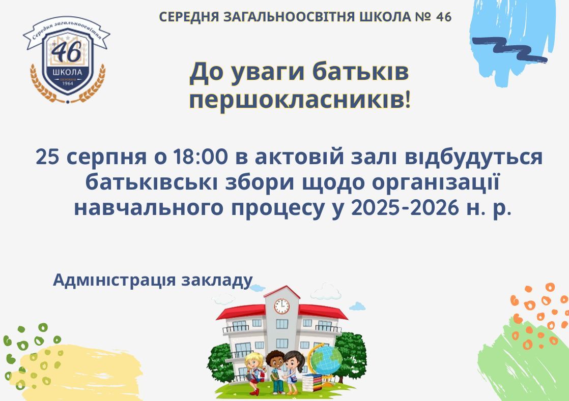 Батьківські збори першокласників!